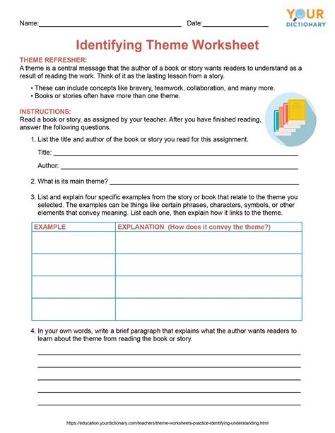 Then write down the book's theme. Think of a book you have read that explores each topic. In this worksheet, children will learn what a theme is, and how they can infer the theme of a story from its elements.